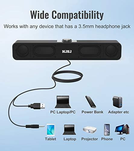 NJSJ Pc Sound Bar, 2.0 USB Stereo Desktop Speaker, Wired Mini PC Soundbar with Quantity Management, 3.5mm AUX Enter for Laptop computer, Tablets, Cellphone, MP3, Monitor, TV, PS4