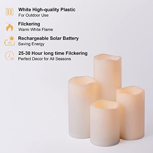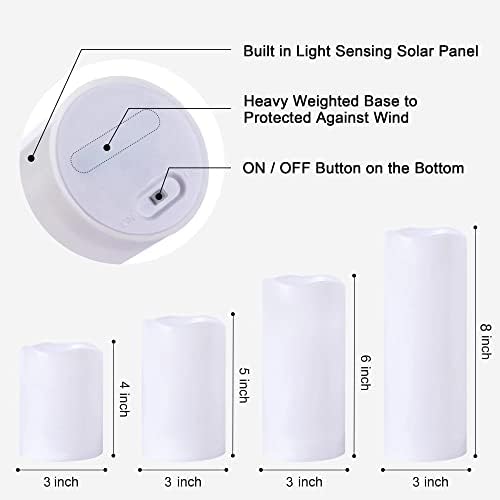NOMFIX Photo voltaic Lights Outside Waterproof, 3”x4”/5”/6”/8” Flameless Flickering Candles, Nightfall to Daybreak Timer, Photo voltaic Pathway Lights for Patio Decor- 4 Pack