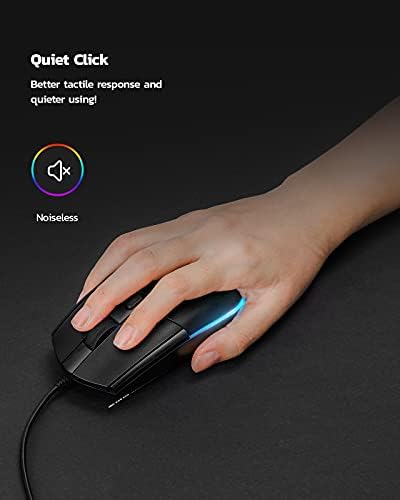 Nulea Wired Mouse, USB Pc Mouse with RGB Backlit, Silent Click on, 1600 DPI, Optical Wired Mouse for House and Workplace, Suitable with Home windows PC, Laptop computer, Desktop, Pocket book
