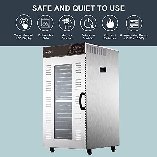 Options: – Meals-grade Stainless Metal and Glass Entrance Door – 20-layer Dwelling Drawer (14.96″ X 11.02″) – Digital Probe and Timing Temperature Management – 360° Scorching Air Circulation – Giant Capability with 20 trays and As much as 13 lbs. of Meals Dehydrate directly – Swap Door Magnetic Induction – Constructed-in Rear-mounted Motor and Inside Fan – Circulates Heat Air – Straightforward to Retailer and Clear – Secure and Quiet to Use – Contact-Management LED Show – Dishwasher Secure – Automated Shut Off – Reminiscence Operate – Contains Overheat Safety – Included Mesh Display & Fruit Roll Sheet – Free Recipe E-book with 50 Authentic Recipes – Adjustable Time and Temperature – Good Method to Protect Fruit, Snacks, Greens, Bread, Flowers, and extra – Automated Shut off when Timer is Carried out – Clear Door means that you can Straightforward Monitor – Air Circulation: Horizontal (again to entrance) What’s within the Field: – (1) Stainless Metal Meals Dehydrator – (1) Included Mesh Display – (1) Fruit Roll Sheet – (20) Trays Technical Specs: – Energy Button: START/STOP Mild Up, Display exhibits 00:00 – Temperature Setting: 160°F – Temperature increment/Decrement: 5°F – Development Materials: Stainless Metal – Energy Provide: AC 120V, 60Hz – Energy Output: 900W – Time Vary: 0 – 24 hrs. – Adjustable Wind Velocity: 1-3 Gears – Temperature Vary: 86°F–212°F (30°C–100°C) – Product Dimension: 18.11” x 15.75” x 31.89” -inches