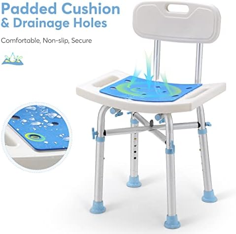 ❤️ Snug Padded Bathe Stool: Padded tub seat is removable for straightforward cleansing and the bathe chair for aged has anti-slip rubber toes with drainage holes on the bath adjustable bathe chair for adults designed to permit water to empty.