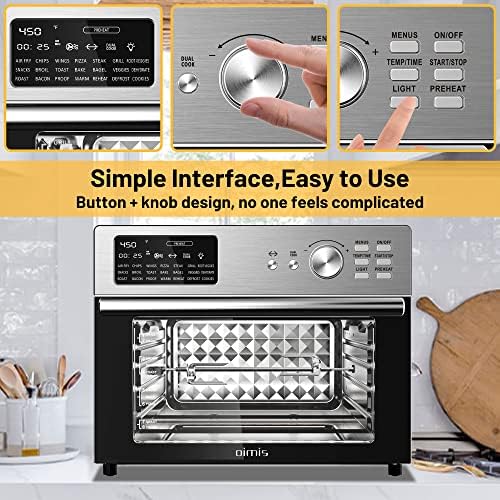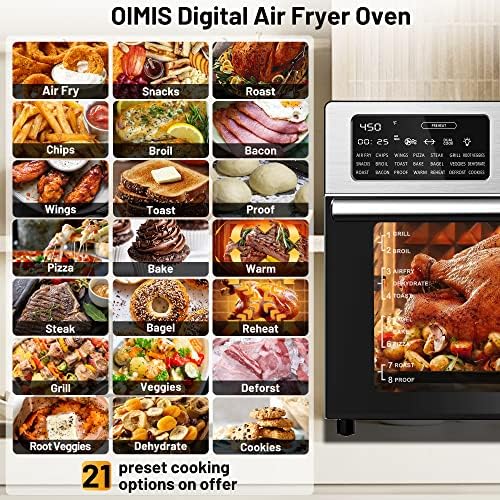 OIMIS Toaster Oven Air Fryer,32QT X-Massive Air Fryers Oven,Stainless Metal Air Fryer Rotisserie Combo,21 in 1 Countertop Ovens, Modern 360° Air Frying Know-how,7 Equipment,cETL Licensed,Producer,Silver
