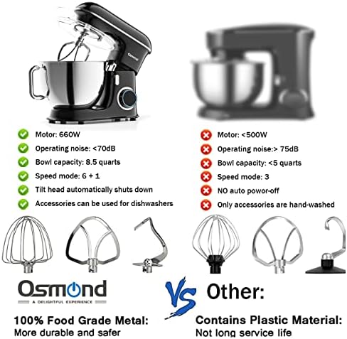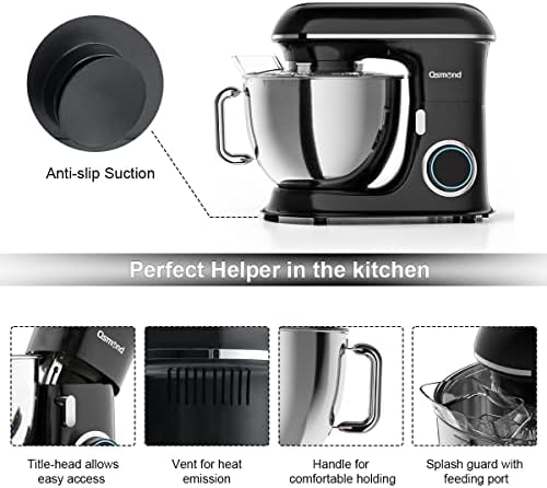 OSMOND Stand Mixer 8.5QT Electrical Mixer 6-Pace 660W Tilt Head Kitchen Meals Mixers Whisk Dough Hook Mixing Beater Splash Guard Baking Cake Prepare dinner black