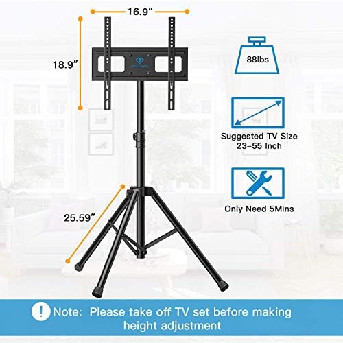 UNIVERSAL SWIVEL TV STAND-TV tripod stand suits most 23-55 Inch TVs like Samsung, TCL, Sony, LG, Sharp, Insignia, Vizio, Toshiba and so forth. Suitable with a number of VESA sample 100x100mm(4″x4″) 200×100 (8″x4″) 200x200mm(8″x8″) 300×200/200x300mm (12″x8/8″x12″) 300x300mm (12″x12″) 400x300mm (16″x12″) and 400x400mm (16″x16″)