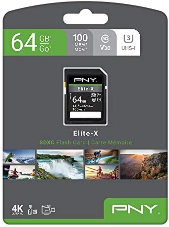 PNY 64GB Elite-X Class 10 U3 V30 SDXC Flash Reminiscence Card – 100MB/s, Class 10, U3, V30, 4K UHD, Full HD, UHS-I, Full Measurement SD