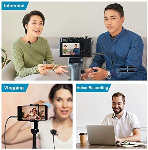 PoP voice 18 Ft Twin Lavalier Microphone, 2 Pack Lapel Microphones for iPhone,Android, PC,Laptop,Laptop computer,Digital camera,Skilled Condenser mic for YouTube,Interview,Video,Embody Numerous Equipment