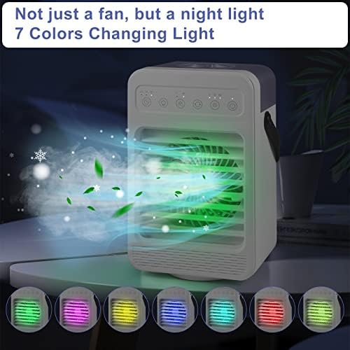 Transportable Air Conditioner, Evaporative Air Cooler with 4 Speeds Gradient Coloration Gentle & 70°Oscillating Perform, 2 Humidification Capability 600ml, 2-6 H Timing, room, house, workplace