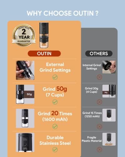 Sturdy Stainless Metal Physique & Conical Burr – In comparison with all the opposite fragile plastic espresso grinders, the Outin espresso grinder is made with a top-graded chrome steel physique, providing you with a pleasant contact and essentially the most thrilling espresso grinding expertise. The conical burrs make the coarseness of your grind extra constant in comparison with a blade grinder, whereas additionally producing much less warmth than chrome steel. It retains the pure taste and the scent of espresso beans completely.
