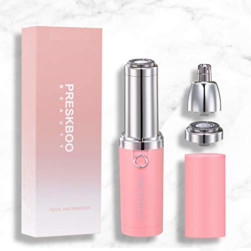 PRESKBOO Facial Hair Remover for Ladies,Painless Hair Remover Shaver for Face,Nostril Ear Trimmer,Girls Hair Removing for Peach Fuzzy,Electrical Razor for Ladies Face,Nostril,Leg,Bikini Line(pink0625)