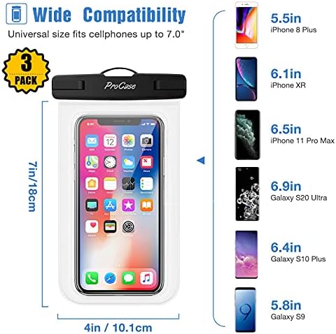 ProCase Common Waterproof Pouch as much as 7″, Cellphone Dry Bag Underwater Case for iPhone 13 Professional Max/12 11 Professional Max/Xs Max/XR/8 Plus/Mini, Galaxy S21 Extremely A42,Moto,Pixel -3 Pack, Teal/Pink/Black
