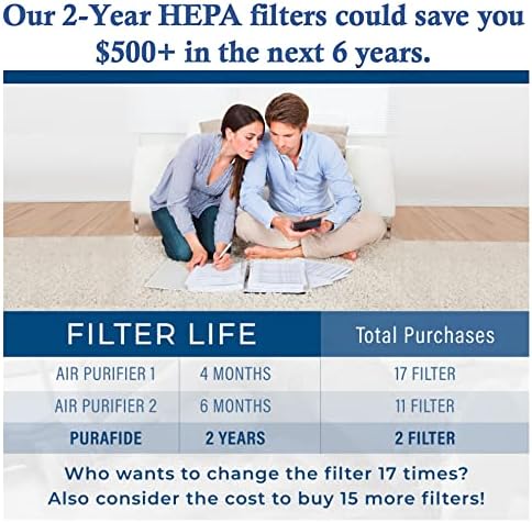 Purafide XP280 | Veteran Owned | 2-Yr Filter Life | H13 HEPA Air Air purifier | Elegant Outdated Trend Controls | 1700 Sq Ft Protection. House, Bed room, Allergic reactions, Pets, Mud – White, 2-Pack