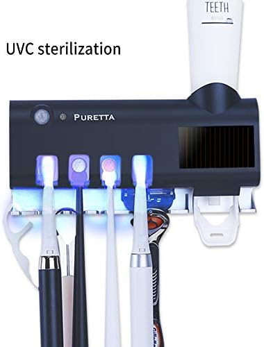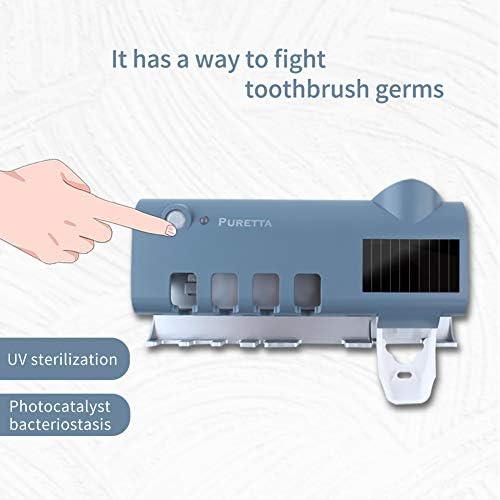 PURETTA Toothbrush sanitizer Toothbrush sterilizer and Holder with LED UV Gentle Sterilization Operate,Rechargeable Photo voltaic Energy,Wi-fi Design,Wall Mounted Computerized Toothpaste Dispenser