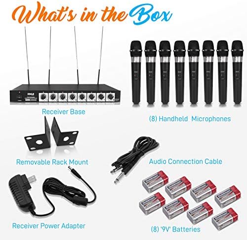 Pyle VHF Wi-fi System-Rack Mountable 8 Channel Cordless Set w/ 8 Handheld Microphones, Blended 1/4″ Outputs-DJ, Karaoke, Convention Speaker-Pyle PDWM8400