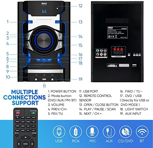 Pyle Wi-fi Bluetooth Stereo Shelf System – 800 Watt CD & DVD Participant for Dwelling Audio, Theater, Mic & AUX Enter, MP3, USB, FM Radio, Bass Reflex Speaker, w/Distant Management, Music Sync LED – PHSKR14