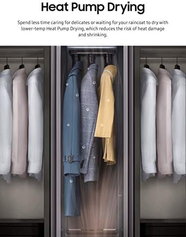 The SAMSUNG AirDresser is the brand new strategy to refresh and sanitize your wardrobe at dwelling. Designed like a tall, skinny cupboard, the garment steamer combines highly effective air and steam to loosen up mild wrinkles and refresh clothes. Fashionable and trendy, the AirDresser makes life simpler because it blends in with any closet or bed room. Plus, with its normal 120V enter plug, the one set up required is plugging it in! Cut back time spent on the dry cleaners by inserting your favourite scented dryer sheet*** and letting the gadget’s deodorizing filter remove 99% of cussed odors.* Function the AirDresser with out the chance of warmth injury or shrinking because the steamer machine employs mild, low-heat drying with none noise or shaking; the drying cupboard is simply that progressive! With built-in Wi-Fi connectivity, you may even function your AirDresser remotely.** The steamer has 22 totally different cycles to run on, comes with a weight package, has built-in Self Clear know-how, and the flexibility to even dehumidify a room. The AirDresser is easy, modern, however oh-so various in its attainable functions. Modernize your closet and provides your clothes new life. *Based mostly on testing by Intertek, utilizing Regular cycle, eliminates 99% of isovaleric acid, 4-ethenylpyridine, valeraldehyde, and tetrachloroethylene. **Obtainable on Android and iOS units. A Wi-Fi connection and a Samsung account are required. ***Dryer Sheets not supplied. Scent energy could differ based mostly on dryer sheet used. Scent could stay inside AirDresser after cycle is full. Discard dryer sheets after every cycle to forestall mould development.