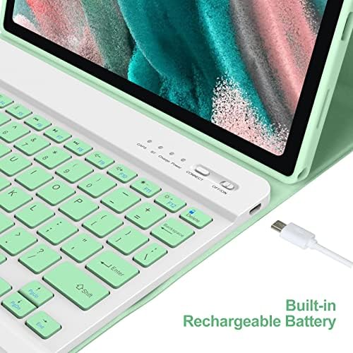 √ Galaxy Tab A8 Case with Keyboard – Bluetooth keyboard for Samsung Galaxy A8 pill, as much as 33 ft connection.Flip your 10.5 inch A8 tab into a pc, clean keys with QWERT format carry you snug typing expertise.Keys with inexperienced shade,make your keyboard distinctive within the college or exterior.