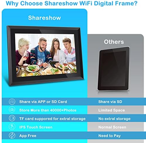 Shareshow 10.1’ WiFi Digital Photograph Body-IPS Contact Display Sensible Image Body with 16GB Storage In-built, Auto-Rotate, Movement Sensor, Wall Mountable, Share Images & Small Video through Free App Anyplace