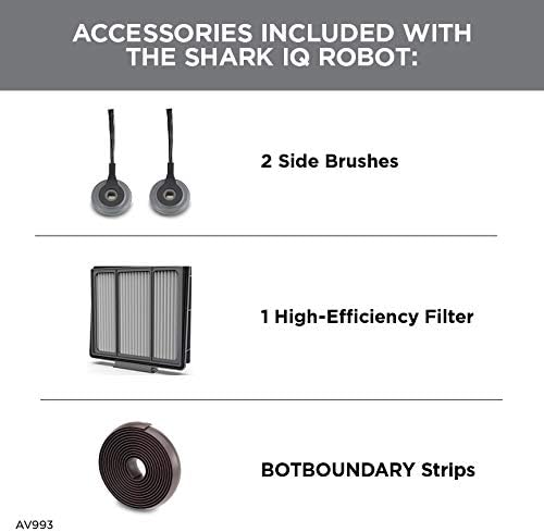 Consists of: Shark IQ Robotic, (1) Charging Dock, (2) Facet Brushes, (1) Filter, (1) BotBoundary Strips