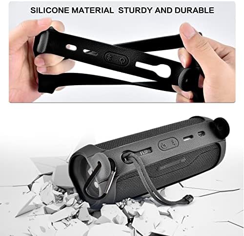 Silicone Case for JBL FLIP 6 Waterproof Transportable Bluetooth Speaker, Gel Delicate Pores and skin Rubber Cowl, Journey Carrying Storage Bag Pouch with Shoulder Strap and Carabiner – Black