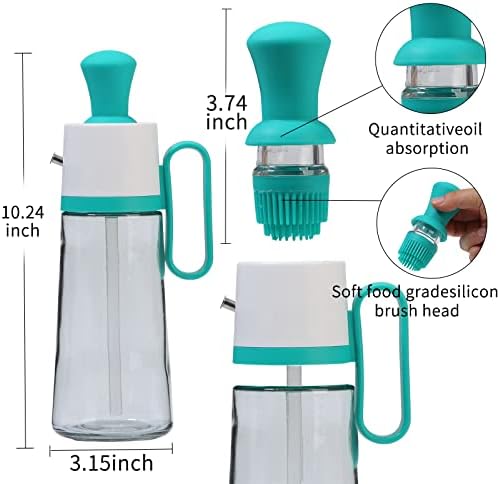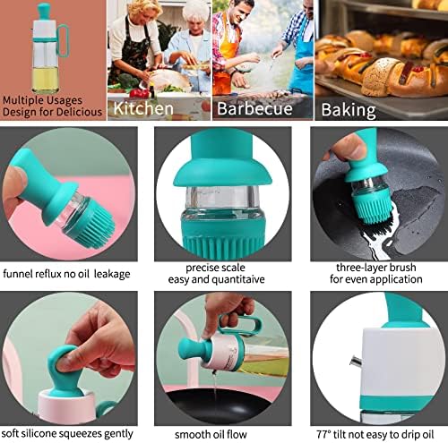 Silicone Dropper Measuring Oil Bottle-Glass Olive Oil Dispenser Bottle With Silicone Brush 2 In 1,for Kitchen Cooking, Baking, BBQ Pancake, Air Fryer, Marinating (New inexperienced)