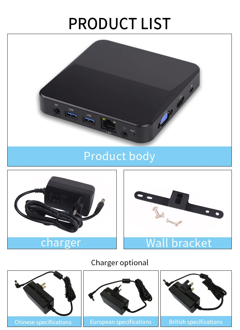 What’s within the package deal ? 1 * P3T Mini PC 1 * Charger ( US / EU / UK / AU ) 1 * HDMI Cable 1 * Handbook ( English ) 1 * Wall bracket