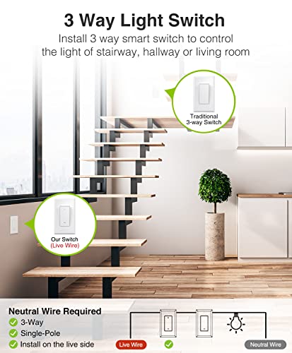 Simple Set up-Not a dimmer, Impartial Wire Required. Solely 2.4GHz (not 5G)Wi-Fi connection. 3 approach good swap person Alexa swap person handbook guides you thru simple step-by-step set up. For connecting with common gentle switches, 3-way swap have to be put in with LIVE wire (in entrance of the common swap).