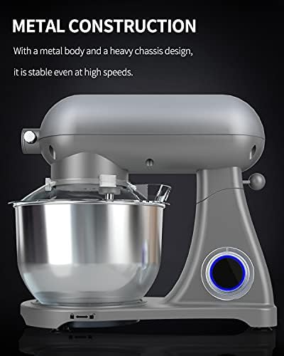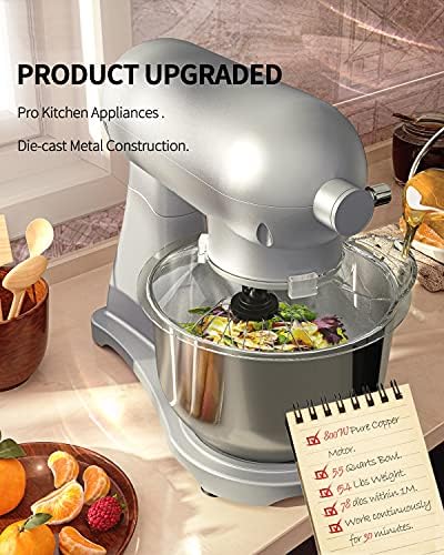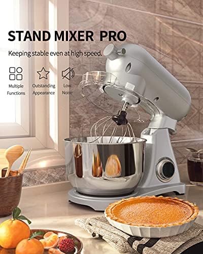 Stand Mixer Professional, 800W 6-Pace Tilt-Head Electrical Meals Mixer, 5.5QT Kitchen Mixer with Stainless Metal Bowl, Dough Hook, Wire Whip & Beater, Splash Guard, for Baking, Truffles, Cookie – Sliver