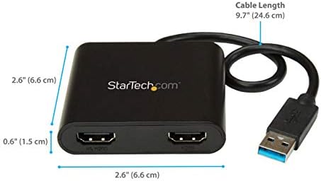 StarTech.com USB 3.0 to Twin HDMI Adapter – 1x 4K 30Hz & 1x 1080p – Exterior Video & Graphics Card – USB Kind-A to HDMI Twin Monitor Show Adapter – Helps Home windows Solely – Black (USB32HD2)
