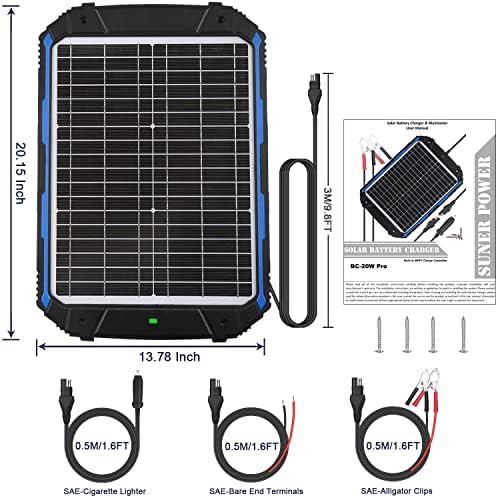SUNER POWER Waterproof 12V Photo voltaic Battery Charger & Maintainer Professional – Constructed-in Clever MPPT Cost Controller – 20W Photo voltaic Panel Trickle Charging Package for Automotive, Marine, Bike, RV, and so forth