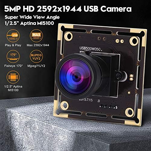 SVPRO 5MP USB Digital camera Module, Broad Angle 170 Diploma Fisheye Mini Digital camera Board Aptina CMOS Sensor USB Digital camera Module UVC Assist Home windows Android Linux Mac for Robotic/Analysis/Medical/Trade
