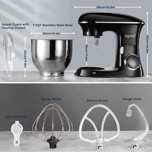 🍰【5 Attachments for Combine】Syvio Kitchen Mixer geared up with 4 mixing equipment: whisk, dough hool, mixing beater and egg white seperator. Particularly the splash guard helps so as to add components with out making a large number