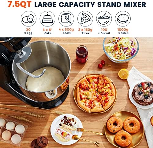 🎂【7.5 QT for 8-12 Perpson Use】Syvio Stand Mixer comes with 7.5 QT meals grade chrome steel bowl,which might maintain 20 x Egg, 3 x 6″ Cake, 100 x Biscuit, 5 x 150g Toast, 1000g x Salad, additionally all of the attachments are dishwasher-safe. Good use for get together, vacation, household dinner