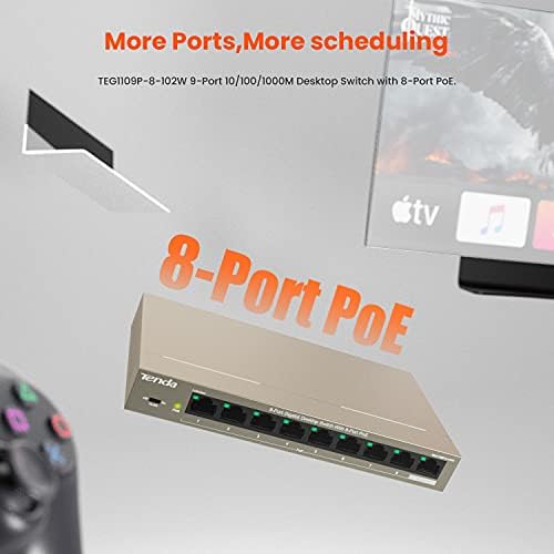 Tenda 9 Port Gigabit PoE Ethernet Change- with 8×PoE @102W (TEG1109P) | Plug & Play | Workplace Dimension | Steel Housing | Lightning Safety | Straightforward Sensible | Restricted Lifetime Safety