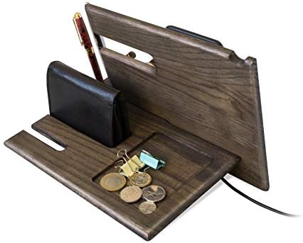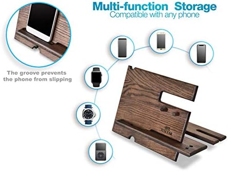 TESLYAR Wooden Telephone Docking Station Ash Key Hooks Holder Pockets Stand Watch Organizer Males Husband Anniversary Birthday Nightstand Purse Pill Boyfriend Father Commencement Male Devices