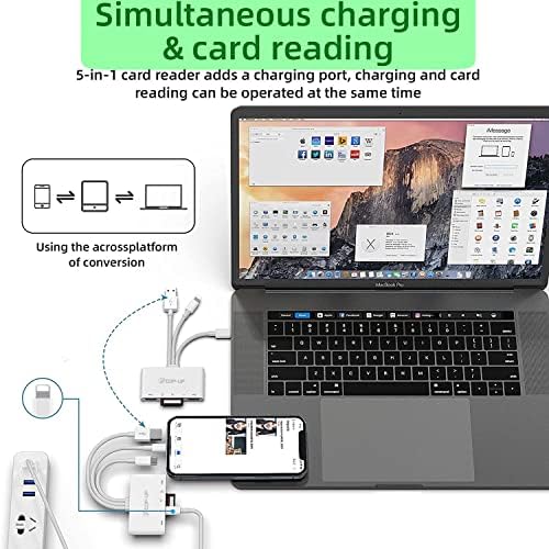 Prime-Up 5-in-1 SD Card Reader – USB 3.0 OTG Adapter & Card Reader for iPhone / iPad / Android / Mac / Digicam with Micro SD & SD Card Slots, Quick Charging Ports, Helps SD/ Micro SD /SDHC/ SDXC/ MMC