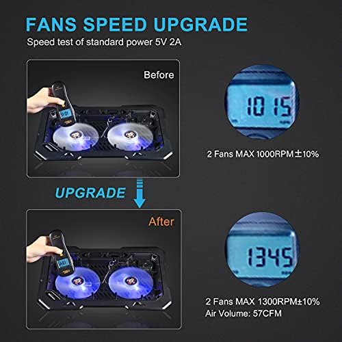 【Velocity Improve】2 followers have upgraded the motor with a velocity of 1300RPM, the cooler pad can deliver extra air quantity and stop the laptop computer router hub xbox ps4 ps5 from overheating.