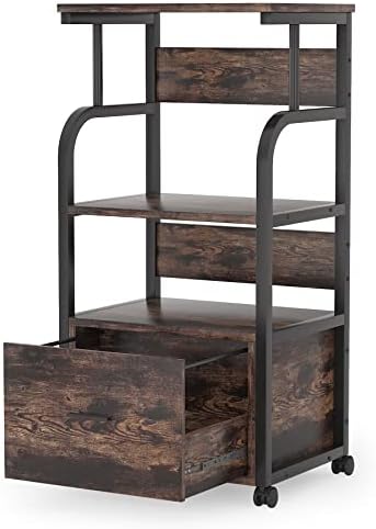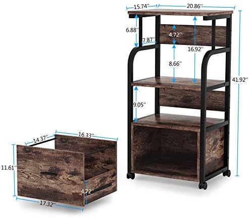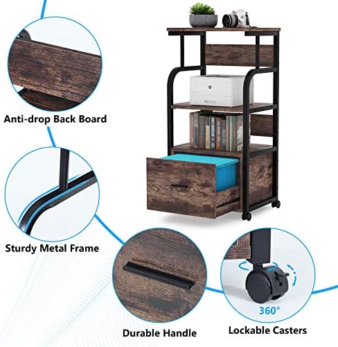 Tribesigns Cell File Cupboard with Printer Shelf, 3 Tier Printer Stand with Authorized Measurement Drawer, Rolling Submitting Cupboard Printer Cart with Storage Cabinets for Residence Workplace Kitchen (Rustic Brown)