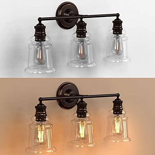 TTfobt CL3 Self-importance Bathtub Mild 3 Lights Oil Rubbed Bronze Lavatory Self-importance Lighting Fixtures with Cylinder-with-Lip Clear Glass, Bathtub Self-importance Mild Over Mirror Trendy Farmhouse (Darkish Bronze, 3 Lights)