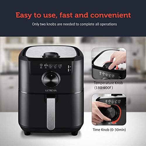 Ultrean Air Fryer, 4.5 Quart Electrical Sizzling Air Fryers Oven Cooker with Deluxe Temperature and Time Knob, Non-Stick Basket, UL Licensed, Prepare dinner E book, 1-Yr Guarantee, 1500w (Renewed)