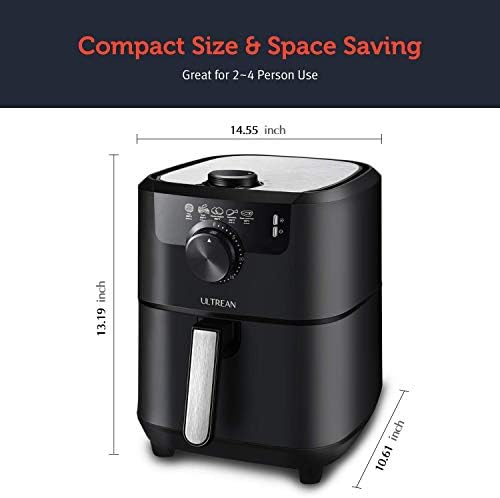 Ultrean Air Fryer, 4.5 Quart Electrical Sizzling Air Fryers Oven Cooker with Deluxe Temperature and Time Knob, Non-Stick Basket, UL Licensed, Prepare dinner E book, 1-Yr Guarantee, 1500w (Renewed)