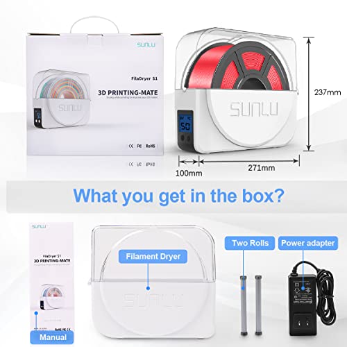 Upgraded Dryer Field of 3D Printer Filament, SUNLU 3D Filament Dryer Field S1, Protecting Filaments Dry Throughout 3D Printing, Filament Holder, Suitable with 1.75mm, 2.85mm, 3.00mm Filament, Storage Field