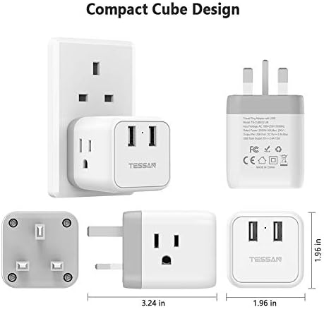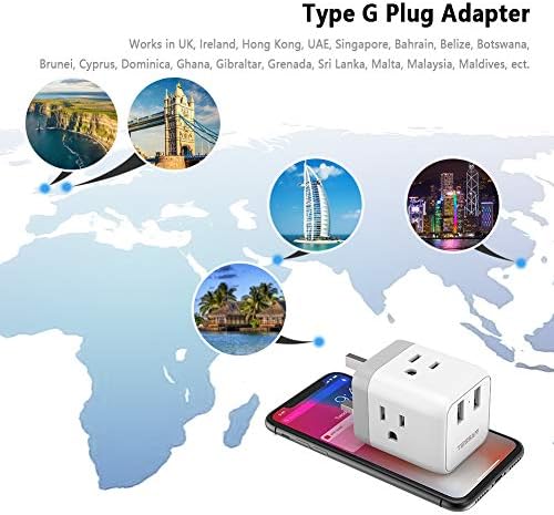 US to UK Plug Adapter, Eire Scotland Sort G Journey Adapter, TESSAN Energy Adapter with 3 American Shops and a pair of USB Ports, USA to Qatar British England Kenya Dubai Irish Outlet Adaptor
