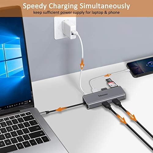 9 in 1 USB C twin monitor Hub designed for Home windows laptops:USB C laptop computer docking station with Twin HDMI, 1 VGA, 1 x USB C (energy supply charging 100W), 1 x USB 3.0(5Gbps), 1 x USB 2.0(for wi-fi gadgets), Micro SD / SDXC, Audio In(for headphone not microphone), SD/microSD. With this twin monitor laptop computer adapter, you may broaden your work alternatives and have a extra steady efficiency. Simply plug and play, no want any drivers. Help twin monitor in your window laptops ONLY.