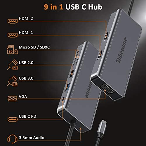 USB C Docking Station Twin Monitor for Home windows, Tobenone USB C Hub Multiport Adapter, 9-in-1 Laptop computer Dock with Twin HDMI, VGA, PD 3.0, 2*USB, SD/TF, Suitable for Dell XPS 15, Lenovo Yoga 930,and so forth