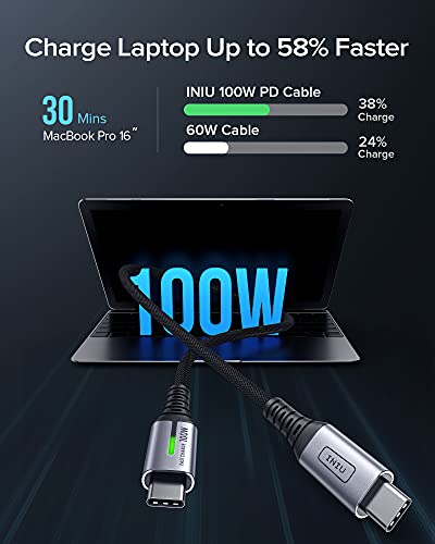 USB C to USB C Cable, INIU 100W [2-Pack 6.6ft] PD 5A Quick Charging Kind C to Kind C Cable, Nylon Braided USB-C Twine Cellphone Charger for Samsung S22 Word 20 iPad Professional MacBook Tablets LG Google and so forth.
