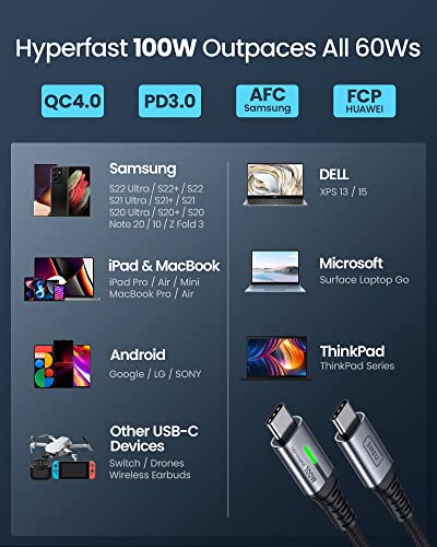 ✅【100W Tremendous Quick Energy Supply】 The unprecedented 100W PD tech takes charging velocity to the subsequent stage. Extremely quick gasoline your Samsung S22 Extremely as much as 89% in 35mins, or powerfully cost MacBook Professional 16“ to 38% in 30mins—that’s 58% sooner than a 60W cable.