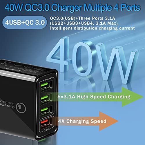 USB Charger 40W QC3.0 USB Wall Charger, BQKATHY 5V/3.1A 4 Port USB Quick Charger Quick Charging Block for Galaxy S10/S9/S8 Word 10/9/8, iPhone X/XS/XS Max/XR/8/7/6, LG, HTC, Moto, Change and Extra