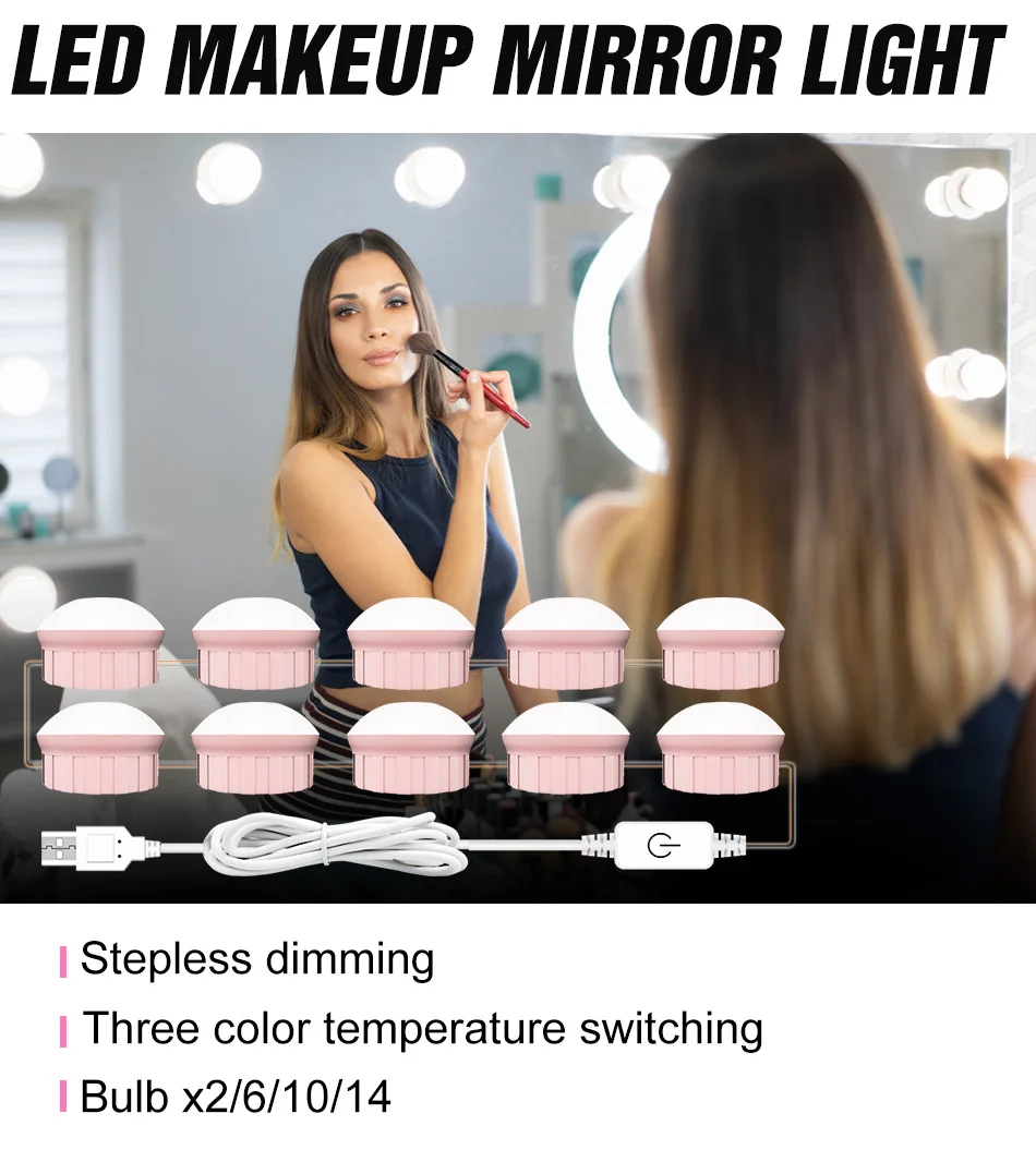 Specification: USB LED 12V Make-up Lamp Wall Mild Magnificence 3 Coloration LED Hollywood Vainness Mirror Mild 2 6 10 14 Bulbs Equipment For Dressing Desk