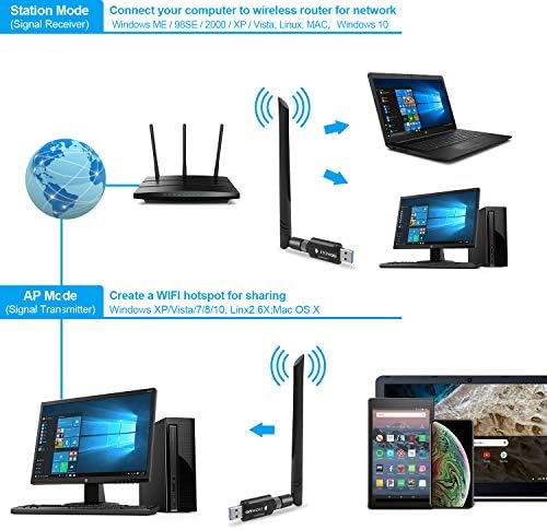 [Supports AP Pattern] This adapter can use a number of Wi-Fi encryption sample, akin to WPA, WPA2. This will present a robust safety assurance for customers.It has STA sample and AP sample. In STA sample, customers can entry in wi-fi router, and in AP sample, customers can share the new spot and constructed a community setting to supply a excessive velocity Wi-Fi sign to different gadgets, identical to your PC, laptop computer, and cellular phone.