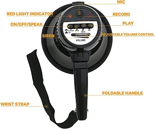 UZI Megaphone, Bullhorn Transportable Speaker, Coach & Referee Megaphones with Recording and Repeat Playback, Actual Siren and Adjustable Quantity; Light-weight with Inbuilt Microphone, 10W/ MAX 15W